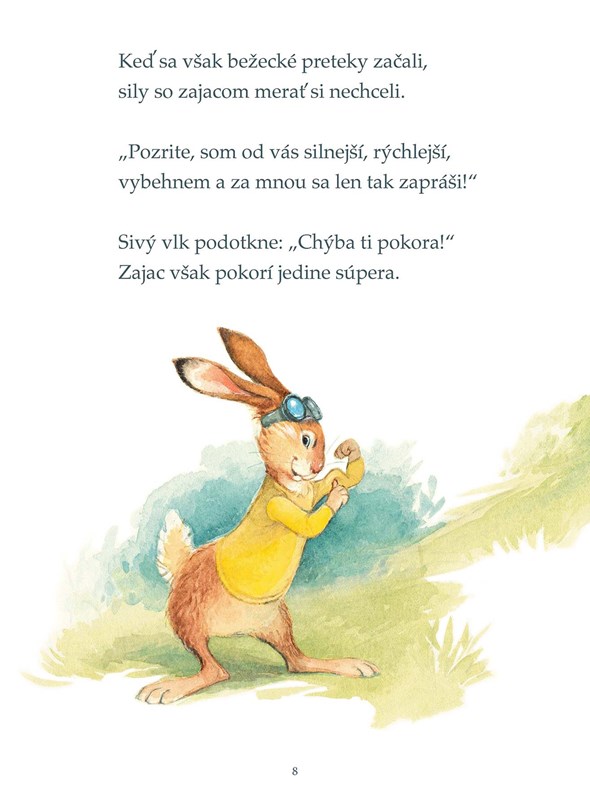 Tri klasické príbehy o zajacovi a korytnačke, troch prasiatkach či mestskej a poľnej myši obohatila Natalie svojím humorom, a pripomína nám tak, že húževnatosť, vytrvalosť a vďačnosť nie sú nemoderné prežitky, ale dôležité ľudské vlastnosti, ktoré nás privedú k dobrému a šťastnému životu.