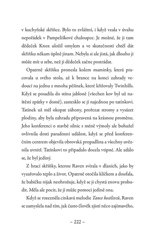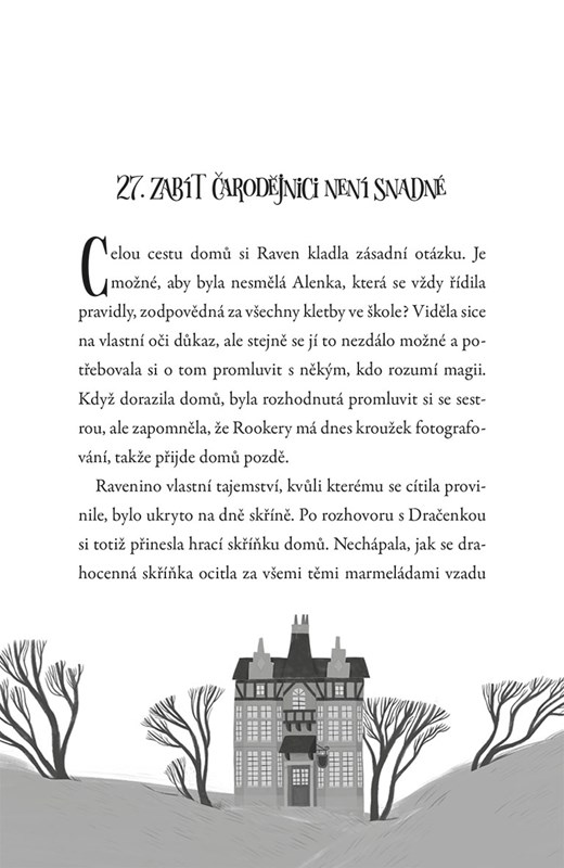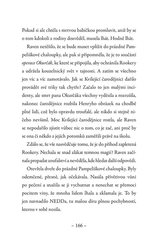 Raven Kouzelná si je vědoma toho, že existují přísná pravidla pro kouzlení na veřejnosti. Když ve škole v městečku Twinhills začne docházet k podivným událostem, které vyvrcholí vraždou pana Okurčáka, napadne ji, že její rodina nemusí být v širokém okolí jediná, která má kouzelné schopnosti. S pomocí amatérského detektiva Mortiho a mluvící kočky Černostínky se pustí do pátrání, kdo za neblahými událostmi stojí. Má v tom přece jenom pařáty Kvílející čarodějnice, o které kolují na škole povídačky, nebo se tu děje něco mnohem závažnějšího?