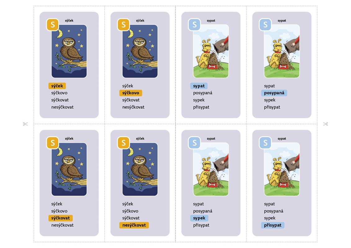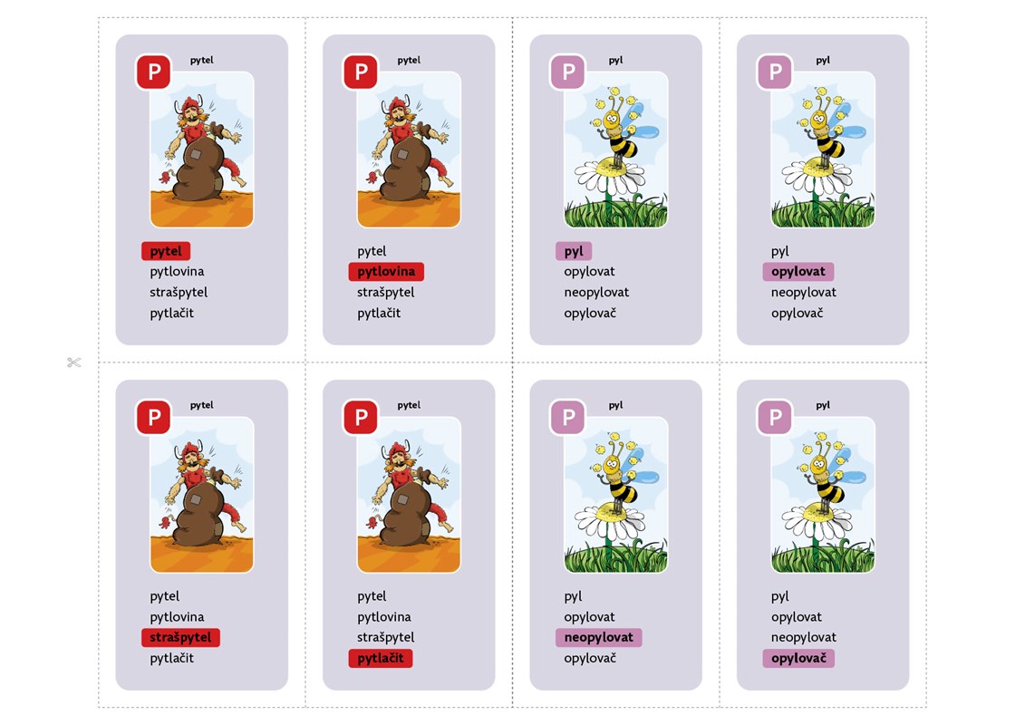 Základní vyjmenovaná slova už Vaše děti zvládly, potřebují si však ještě procvičit slova s nimi příbuzná? Zahrajte si spolu kvarteta!