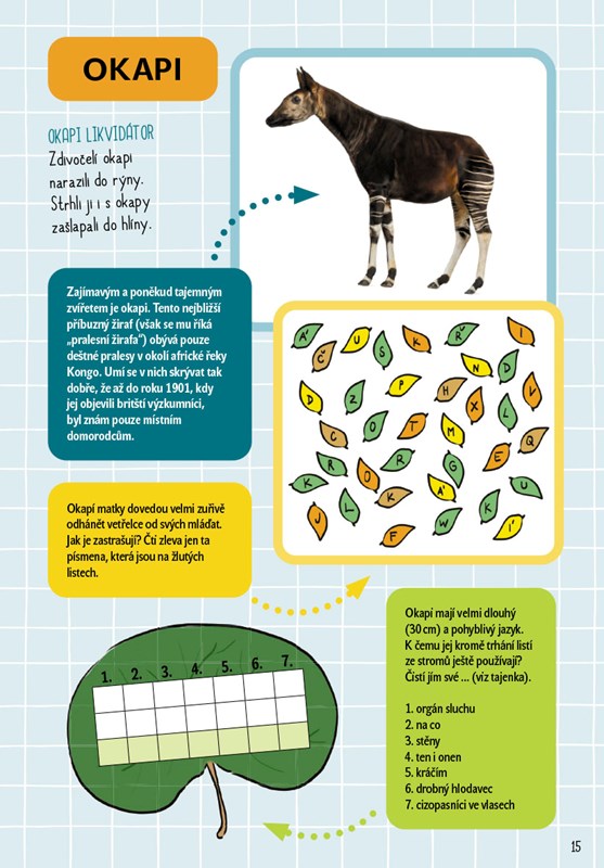 Miluješ zvířata? Zajímá tě, co všechno dovedou? A chceš se to dozvědět zábavným způsobem? Tak si připrav tužku, pastelky, nůžky a nastartuj svůj mozek. Budeš totiž kreslit, vybarvovat, luštit, počítat, ale také skládat a trhat. Během zábavných aktivit se přeneseš do lesů, savan, pouští, hor i pod mořskou hladinu. Mimo úkolů, tvoření a luštění na tebe čeká i plno veselých básniček.