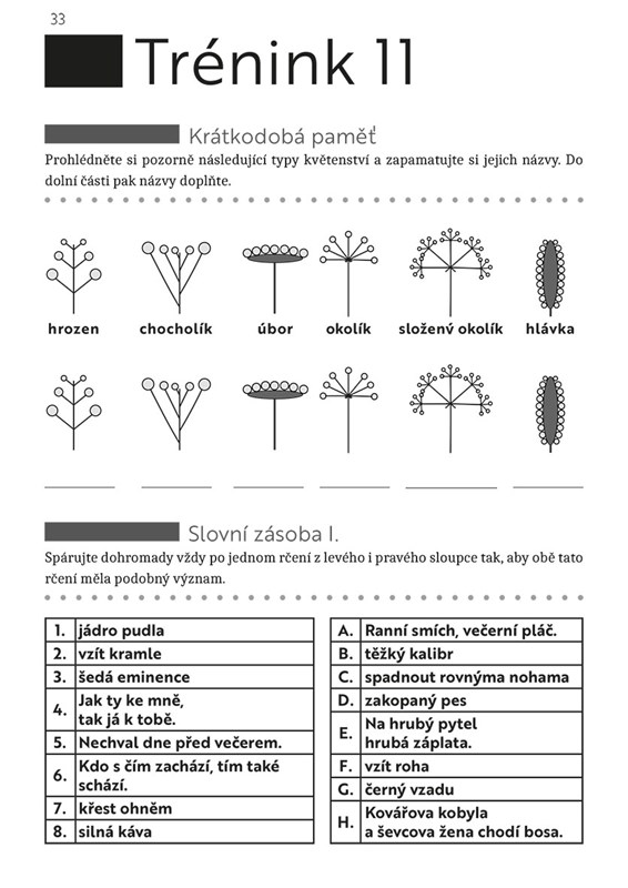 Kniha je zaměřena na tematiku procvičování paměti a dalších, tzv. kognitivních funkcí (slovní zásoba, koncentrace pozornosti, kreativita, zrakově-prostorové schopnosti, logické myšlení i dlouhodobá paměť). Je pojata tak, aby se podle ní dalo procvičovat po celý rok (obsahuje 52 tréninků pro každý týden v roce). Čtenář by měl po dobu 6 dnů každý den provést vždy jedno cvičení a sedmý den se pak věnovat doplňujícím aktivitám, které jsou také uvedeny a které aktivují různé části mozku. Kniha je ve velkém komfortním formátu a obsahuje mnoho kvalitních ilustrací a fotografií, aby procvičování bylo ještě příjemnější a zábavnější.