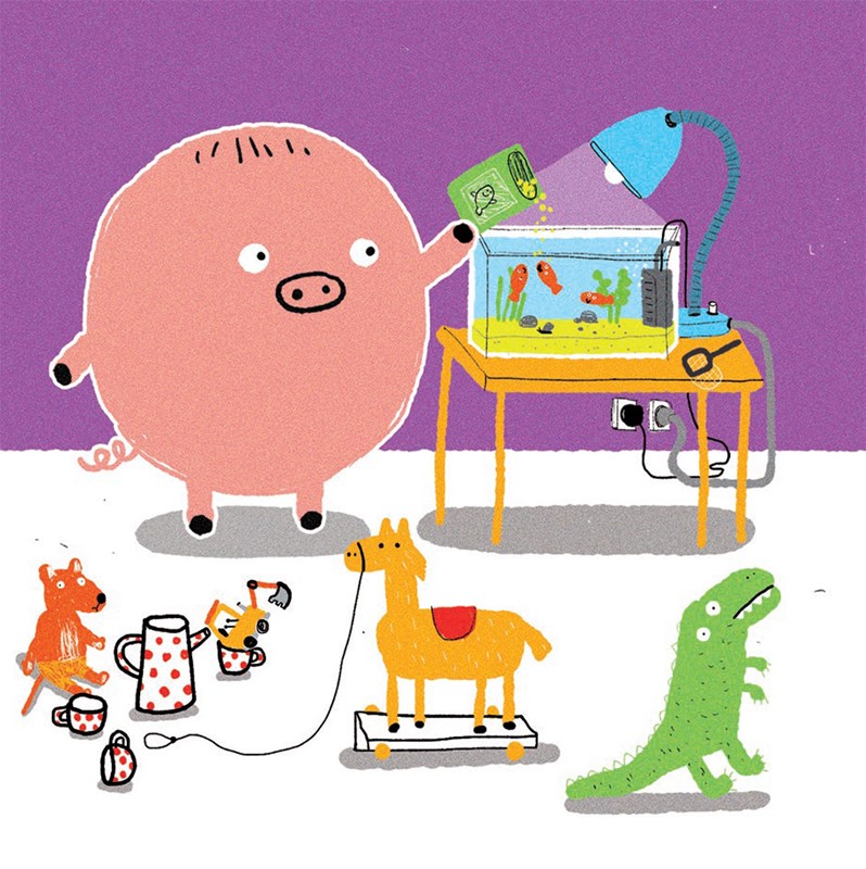 Již třetí leporelo o malém prasátku, které si stejně jako vaše dítko doma hraje, objevuje, papá, cáká, pomáhá rodičům, ale hlavně řádí!