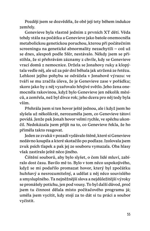 Lidstvo směřuje k vyhynutí. Poslední přirozený porod proběhl před více než dvaceti lety, a aby nyní žena počala dítě, musí projít riskantním procesem umělého oplodnění. Každé novorozeně monitoruje zvláštní úřad a prohřešky proti rodičovským standardům mohou mít nedozírné následky. Proto Kit nikdy dítě nechtěla. Když ale potkala Thomase, všechno se změnilo. Všechno vypadalo růžově. Tak proč teď utíkají? A co když se se svou krásnou dcerkou bude muset rozloučit? Některá rozhodnutí už totiž nejde vzít zpět…