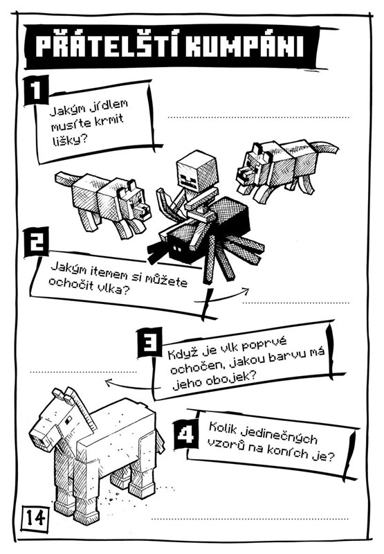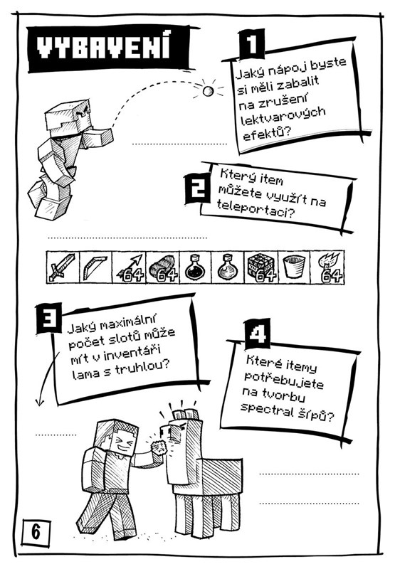 Naučte se triky užitečné pro stavby díky příručce Epické základny, procvičte si postřeh při pátrání v zábavné knížce Chyť creepera a otestujte se v oficiální Knize kvízů s osmdesáti otázkami, co všechno víte o světě Minecraftu. Jako dárek pro vás máme parádní plakát a minecrafťáckou visačku na dveře!