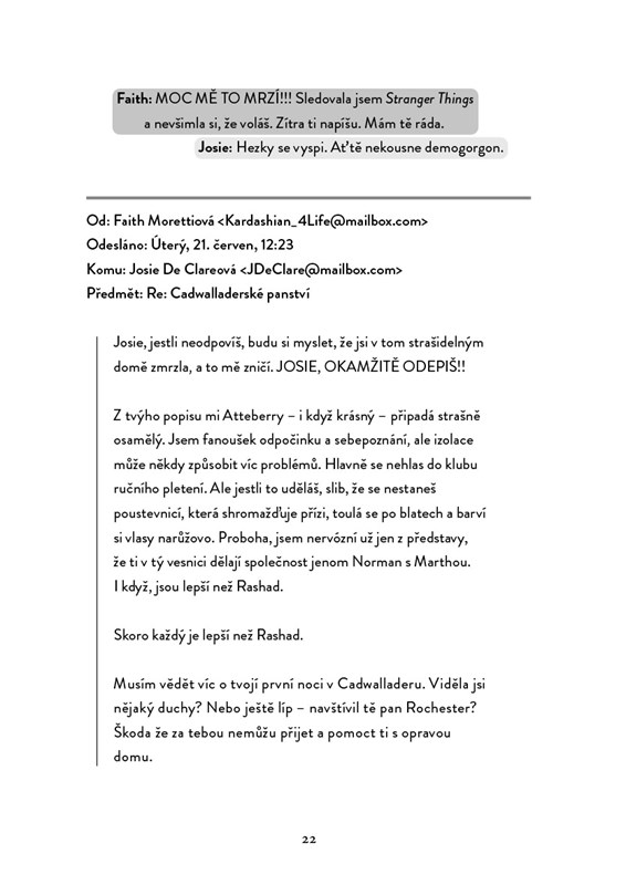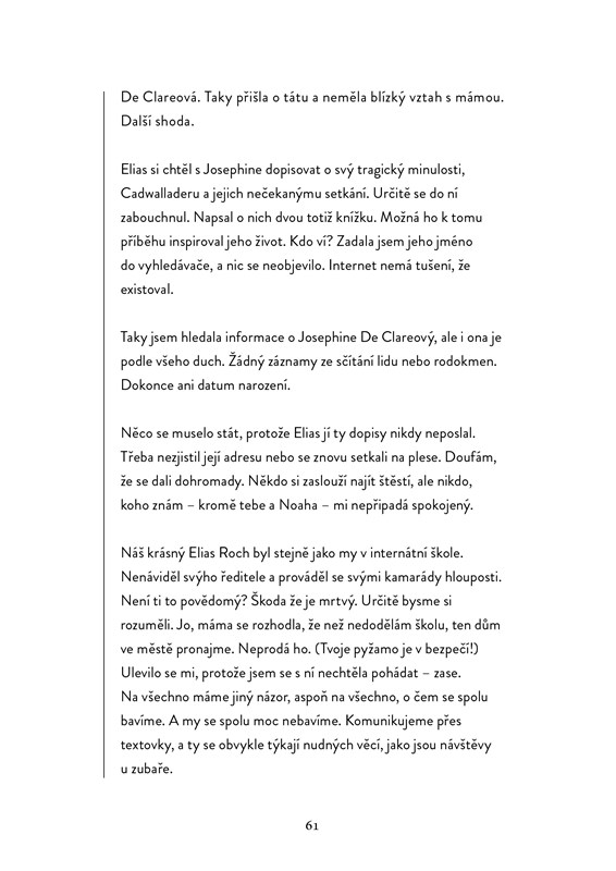 2021: Smrt otce, krize dospívání, odklad studia na vysoké. Tak vypadá nejhorší rok v životě Josie De Clareové a žádné množství čaje a čokolády to nezachrání. Překvapivé dědictví v podobě venkovského sídla, o jehož existenci neměla potuchy, ji dovede k rozhodnutí opustit Londýn a vyčistit si hlavu. Zatímco prozkoumává panství, narazí na dvě stě let staré dopisy z pera neznámého pisatele, které jsou adresovány dívce jménem Josephine. Záhy objeví rukopis románu, jehož hlavní hrdinkou je bezpochyby ona…