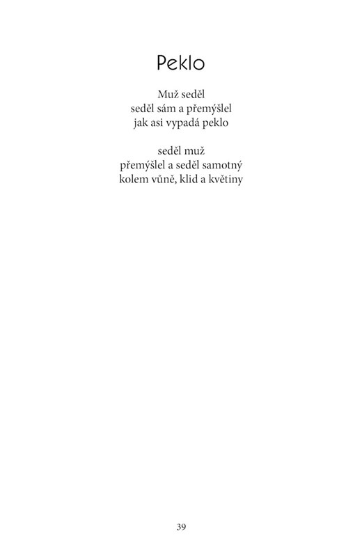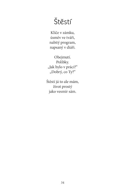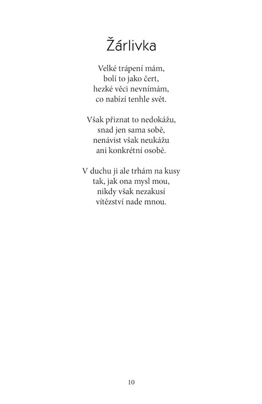 Zamilovanost, láska, sebevražda a ztráta. Výběr básní zachycuje a popisuje vnitřní život a myšlenky autorky. Básně jsou řazeny chronologicky, jednotlivá témata se střídají. Pro odlehčení jsou ty emočně náročné proloženy méně silnými, někdy hravými básněmi. Poskytují možnost ztotožnit se, najít úlevu a pochopení nebo jen nahlédnout do života mladé ženy dnešní doby. Sbírka může být společníkem na dlouhý večer či na cestu velkou i malou.