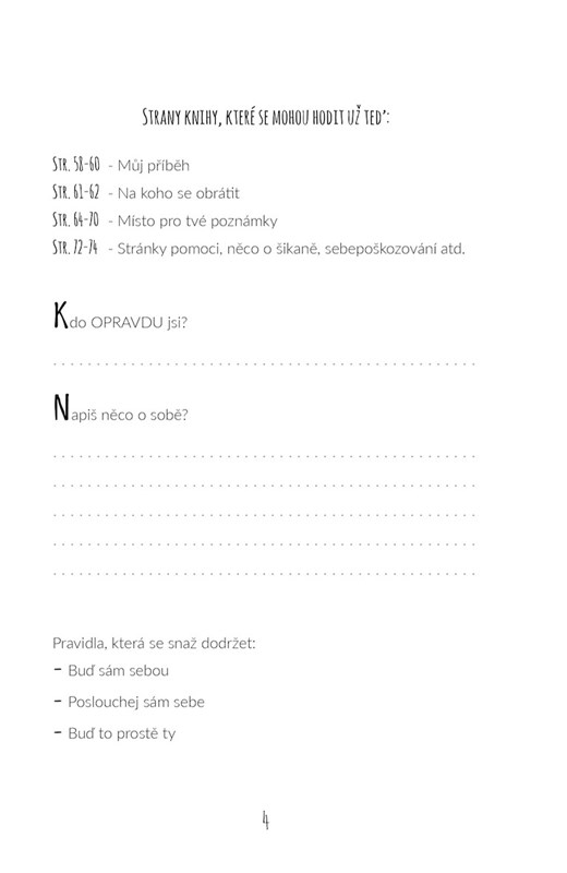Deník, který je propletený mým příběhem, ale zároveň je plný úkolů, otázek a myšlenek pro svého čtenáře. Ten se po jejím přečtení stane spoluautorem.
