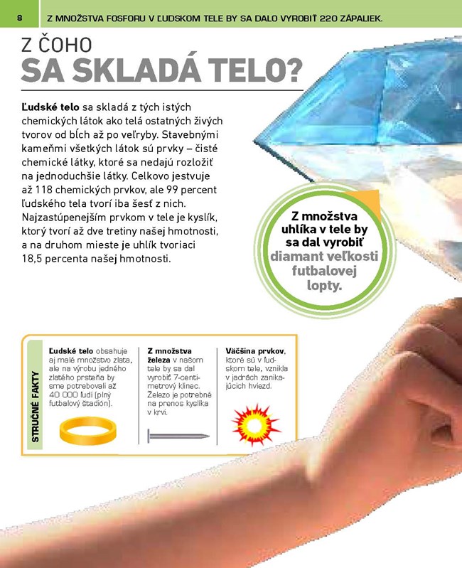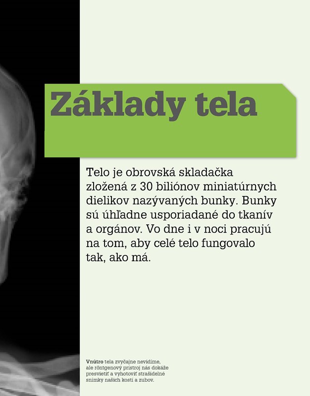 Naše telo je hotový zázrak. Predstavte si, že kým ste si prečítali túto vetu, vyrobilo štyri milióny nových buniek! Viete, že naša DNA by sa dala 20-krát obtočiť okolo Slnka a Zeme? Že srdce nám počas života napumpuje toľko krvi, že by zaplnila celý supertanker? Alebo, že počas života vydýchneme dostatok vzduchu na naplnenie 100 teplovzdušných balónov a zjeme 50 ton potravy?