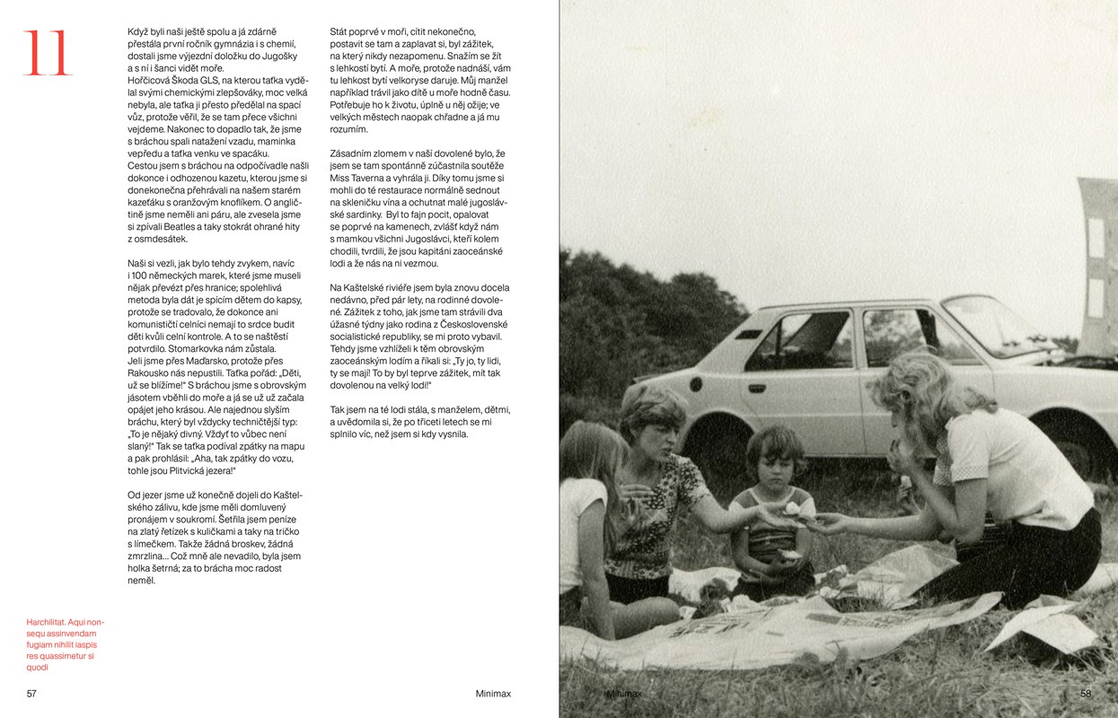 Díky tomu se dokázala zpátky vžít do té mladé, částečně naivní holky, která do všeho šla bezhlavě a uměla si užít na plno všechny své vzestupy a pády. „O fotografie jsem neměla nouzi. Mamka měla obrovskou zásobu časopisů a já mnoho fotek z cest z foťáků na jedno použití. Byl to takový osobní dárek sama sobě ke svým narozeninám.“