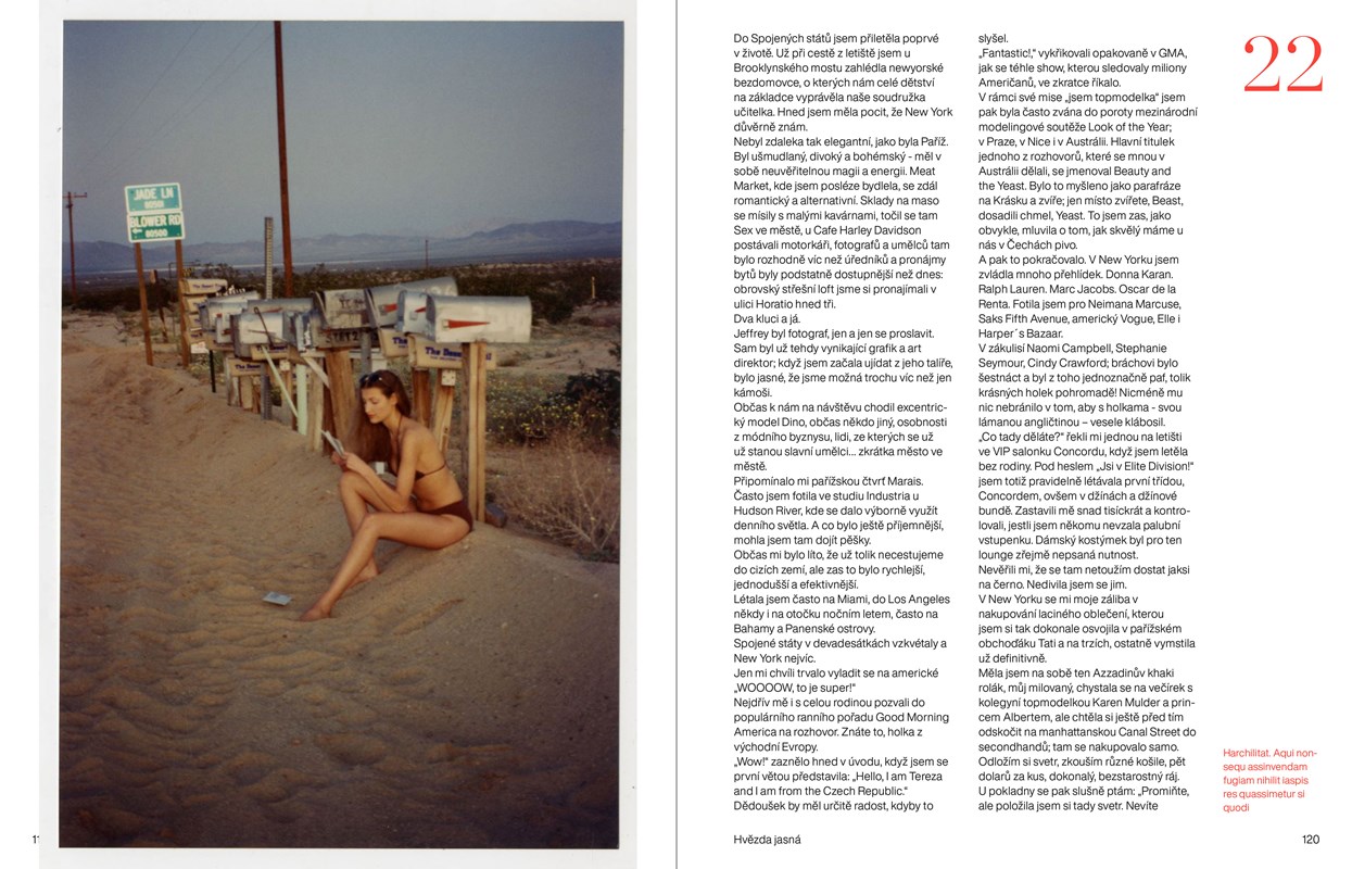 „Není to obsáhlá autobiografie, ale dobrodružná pouť jedné z nejslavnějších světových topmodelek za svobodou. Vrcholí vyprávěním o nadaci pro opuštěné a znevýhodněné děti, která nese její jméno a letos oslaví čtvrtstoletí existence. Do knihy navíc přispěla i řada jejích blízkých, jako je maminka Alena, manžel Burak, princ Albert, Eva Herzigová nebo Bryan Adams,“ popsala Bednářová, která tak pomohla vytvořit unikátní knihu.