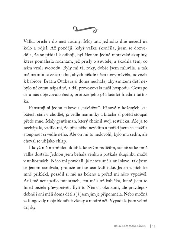 Chtěla se stát tankistkou, ale místo na vojenskou školu v Milovicích omylem dorazila do Prahy, kde přímo na ulici dostala nabídku pracovat jako manekýna. Marta Pospíchalová se brzy stala jednou z nejvyhledávanějších modelek v socialistickém Československu, procestovala mnoho zemí světa, dostávala i role ve filmu a na divadle. Její paměti jsou jako procházka kulturní scénou druhé poloviny dvacátého století. Znala se s množstvím známých a vlivných osobností, byla partnerkou Miloše Kopeckého, přátelila se s Janem Werichem, Karlem Gottem i Věrou Chytilovou. Vedle společenského života nahlédneme i do jejího soukromí a do zákulisí tehdejšího módního průmyslu a nechybí množství vtipných historek spojených s její prostořekostí. Fascinující vyprávění ženy, která byla modelkou s nejdelší kariérou u nás, čtenáře zavede i do jejího dětství za války v moravském Velehradě a dospívání v poválečném Československu, které završila osudnou cestou vlakem, díky níž její život nabral nový směr.