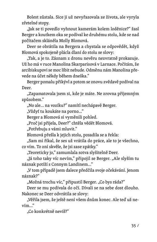 Končí jaro a ledy pukají. Deer, kamarádka i policejní kontakt Sama Bergera a Molly Blomové, se zotavuje po brutálním útoku ruského mafiánského bosse. Protože se učí znovu chodit, nedostane se nějaký čas k ničemu jinému než ke kancelářské práci. Během papírování však objeví nečekané spojení mezi těly, která jedno po druhém vydává rozmrzající souostroví. Někdo se chystá znovu zabíjet. Mohou Sam, Molly a Deer zasáhnout, nebo realita dalece přesáhne jejich nejdivočejší představy?