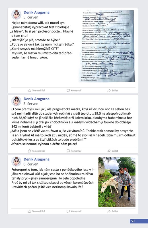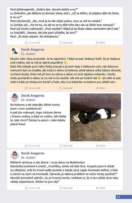 Kromě toho, že Lucie ve statusech i nadále vtipně glosuje příběhy svých blízkých, veškeré dění také komentuje Pan pes. Jeho