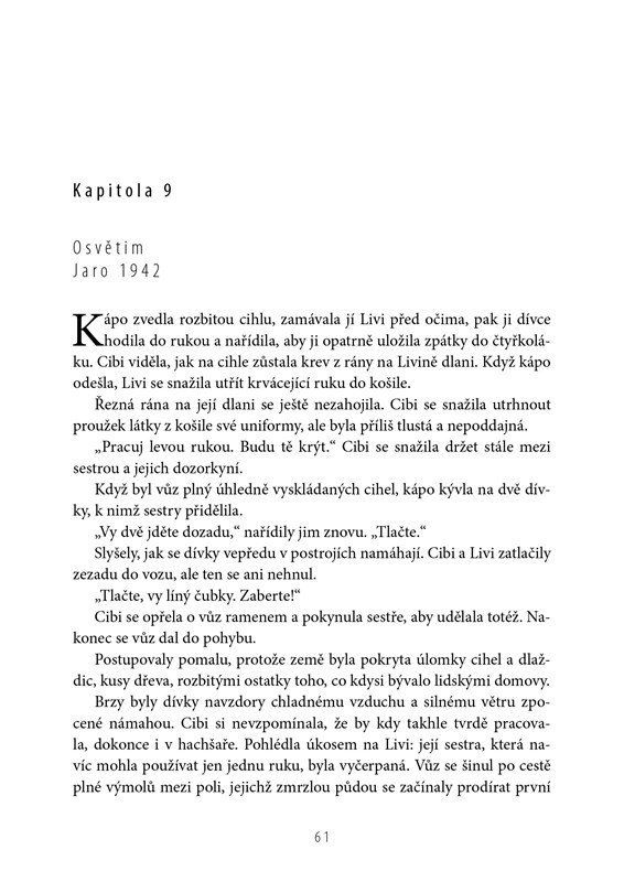 Heather Morrisová to znovu dokázala. Použila zkušenosti tří sester ze Slovenska, které přežily Osvětim, a podělila se s námi o jimi prožité hrůzy i radosti. Autorčiny živé popisy s citáty, časy, daty a místy jsou pozoruhodné. Jde o nepředstavitelný příběh, který bylo nutné vyprávět. Jsem moc ráda, že to udělala. Vy budete také.
