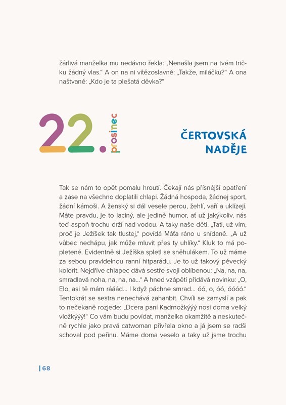 Tři deníky a tři roky, které přinesly tolik radosti, smíchu a rodinných historek, ale také útrap v nelehké době. Jasný důkaz, že dětská nevinnost, humor a bezprostřednost nás dostanou z jakékoliv šlamastyky. A také krásná možnost vrátit se prostřednictvím čtyřčlenné rodiny Vojtěcha Bernatského do dob, kdy veškeré naše kroky určovaly děti. Do dob, které jsou nejpikantnějším kořením života. A které tak rychle utečou a už se bohužel nevrátí.