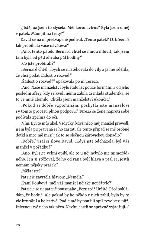 Poslanec Bernard Douba, který si za život vytvořil svým nadřazeným hrubým chováním spoustu nepřátel, je v březnu 2020 nalezen mrtev. Patolog jako příčinu smrti určí předávkování léky. Zemřel ale vlastní vinou, nebo šlo o promyšlený trestní čin? Právě to má objasnit tým zkušených vyšetřovatelů. Major David Veselý a jeho kolegové Tereza Malíčková a Josef Pařízek řeší v náročném období nouzového stavu nejen tento nejasný případ, ale i své osobní životy.