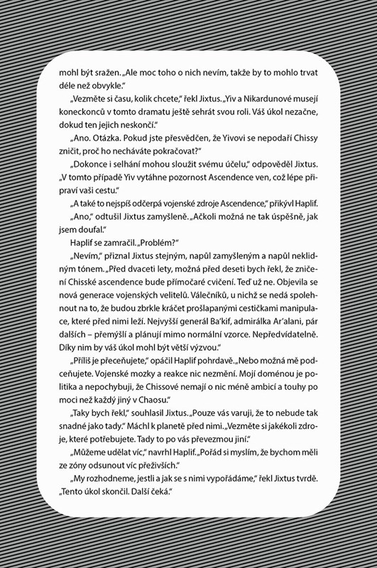 Thrawna stále ještě věnčí úspěch jeho posledního triumfu. Dovedl Chissy k vítězství a přinesl slávu rodině Mitth, nicméně skutečná hrozba Ascendenci nebyla zažehnána. Její nepřátelé nevyhrožují, neposílají ultimáta, ani neshromažďují na okraji Chaosu lodě. Jejich zbraně jsou skryté za úsměvy a štědrostí: rozdávají dary. Bez podmínek nabízejí své služby.