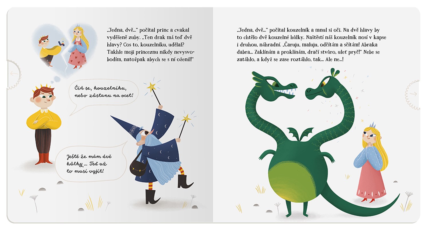Bez dovednosti počítat se neobejde ani pohádkový princ. Co naplat, když nemá všech pět pohromadě, nepomůžou mu ani kouzla popleteného kouzelníka. A že to ten čaroděj pěkně zamotal! Z jedné dračí hlavy jich vyrobil hned šest. Schválně, jestli je dokážete všechny spočítat…