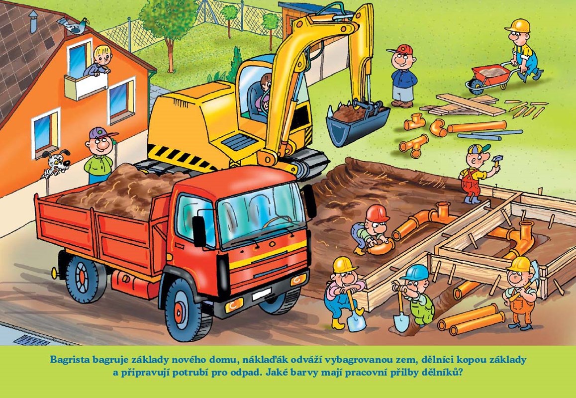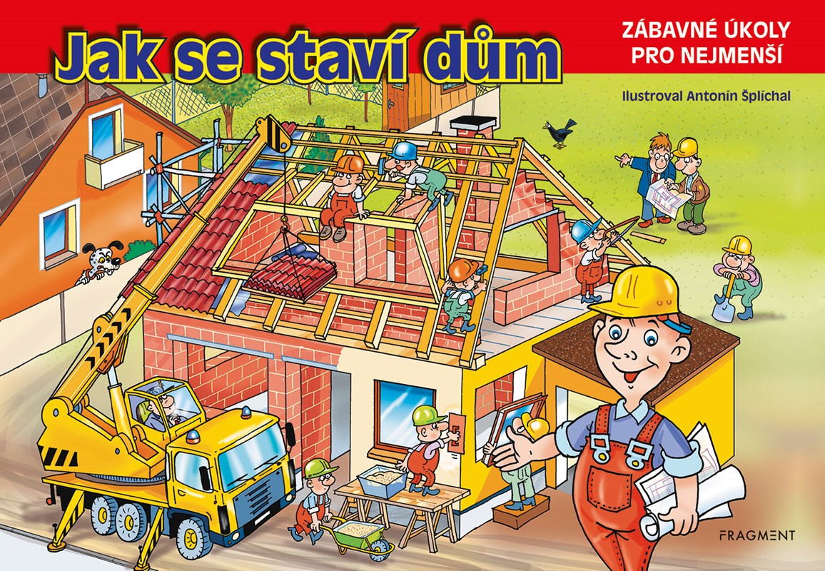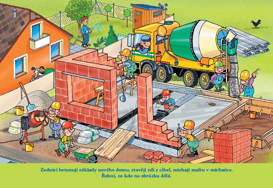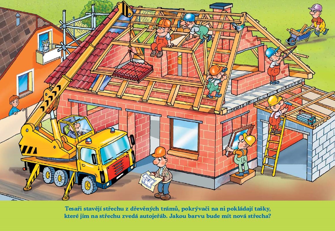 Leporelo s obrázky a jednoduchými úkoly o tom, jak se staví dům.