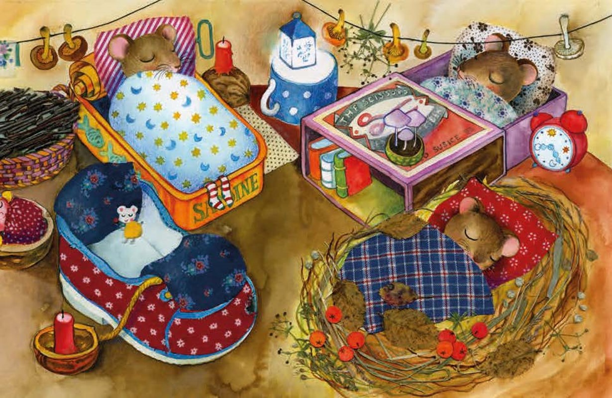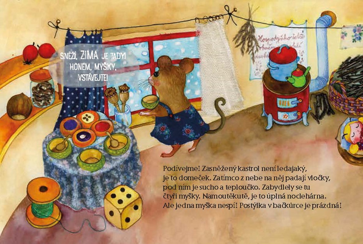 Co prožívají čtyři myšky během jednoho roku? V zimě většinou spí, jedna má postýlku z plechovky od sardinek, druhá z krabičky od sirek, třetí ze slaměných stébel, čtvrtá z bačkorky. Na jaře myšky vyskočí, pracují na zahrádce, v létě se koupají, mlsají ovoce, na podzim sklízejí záhonky a připravují se na zimu. Ale to jistě není všechno. V bohatě ilustrovaném leporelu toho objevíte mnohem víc!