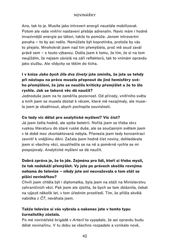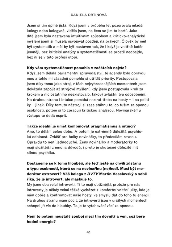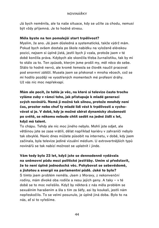 Moderují zpravodajské pořady, vedou velké mediální domy, píšou o tématech, která hýbou světem. Jaké překážky musely ve své kariéře zdolávat a kde berou motivaci? Linda Bartošová, jedna z hlavních tváří zpravodajské ČT24, vyzpovídala své kolegyně napříč mediálním prostorem. Daniela Drtinová, Světlana Witowská, Lenka Kabrhelová a další výrazné osobnosti české žurnalistiky vám představí specifickou pozici žen na mediální scéně s nebývalou otevřeností.