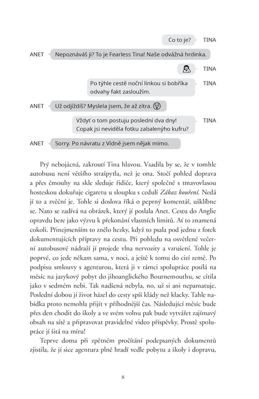 Vstříc novým výzvám, řekne si devatenáctiletá Tina, když nasedne do nočního autobusu do Anglie. Měsíce je bez tanečního partnera a nedostala se ani na vysněná práva. Po maturitě tak kývla na nabídku agentury, která ji vysílá na jazykový kurz do jihoanglického Bournemouthu. Z pobytu tam má přinášet pravidelné online vstupy a reportáže: Haštag spolupráce. To, že cestu do Londýna stráví vedle povědomého kluka, který jede na stejné místo, považuje za povedenou scénu jako vystřiženou z love story s předvídatelnou zápletkou: Haštag letníláskanaobzoru. Co by se tak mohlo pokazit?
