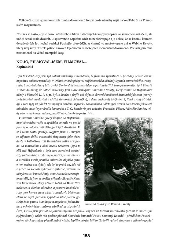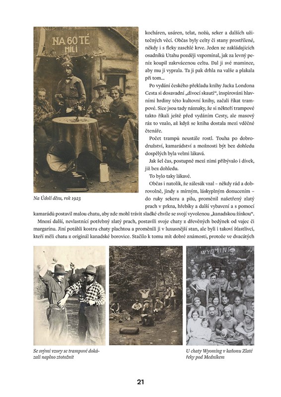 Připomenete si vše, co se s trampingem neodmyslitelně pojí – jeho dějiny, vandry, potlachy, písničky, ale i různé historky, které se mezi trampy tradují. Zavzpomínáte i na slavné trampské osobnosti a navštívíte vyhlášené trampské hospody. Po celou dobu vás bude provádět spousta autentických a často i raritních fotografií.