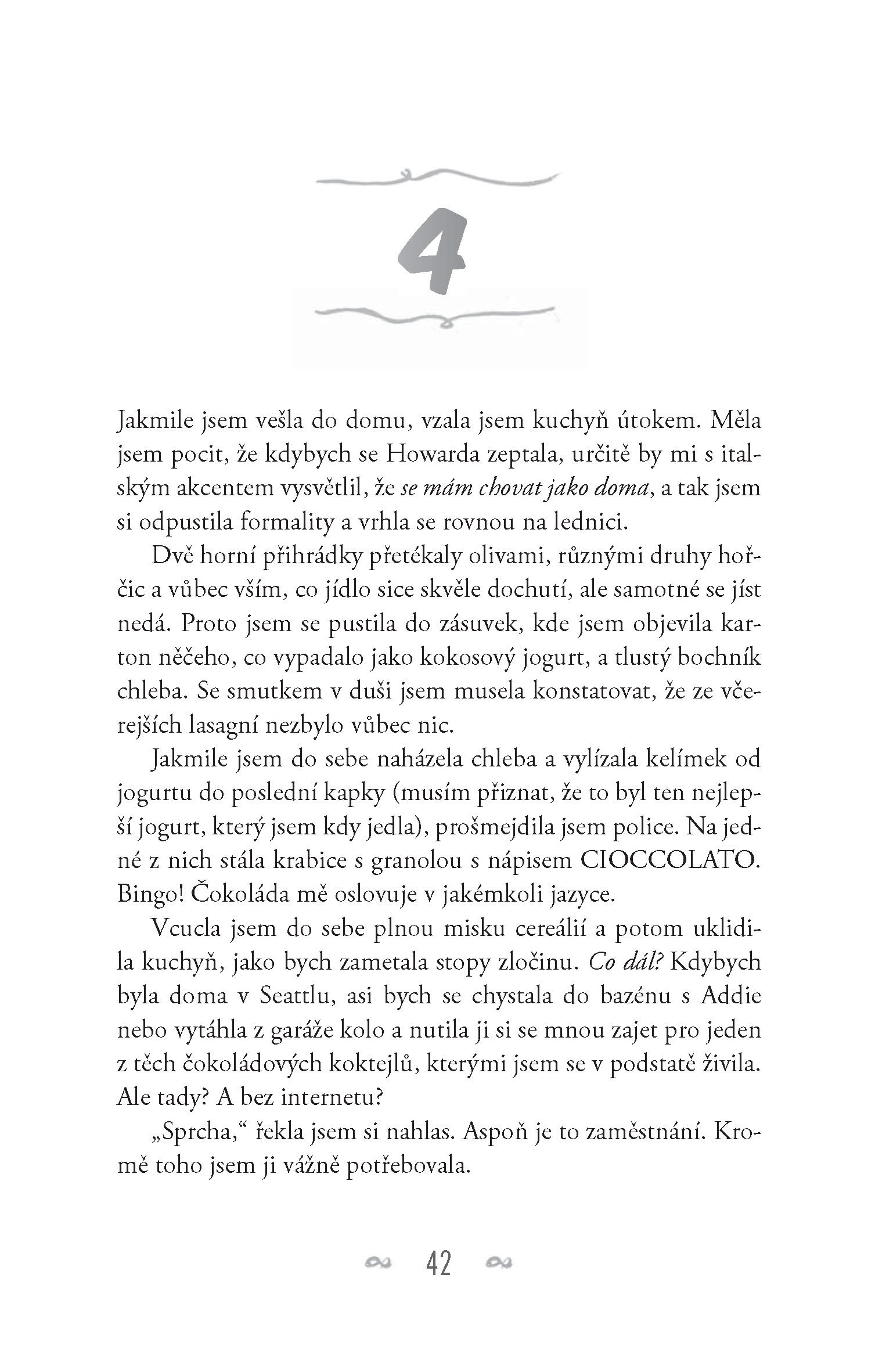 Pak se jí ale dostane do rukou deník, který si její máma vedla, když žila v Itálii. A Lina najednou objevuje magický svět tajných lásek, nádherného umění a skrytých pekáren. Svět, který ji okouzluje a vede k tomu, aby odhalila tajemství, které změní vše, co si Lina myslela o mámě, otci, a dokonce i sama o sobě.