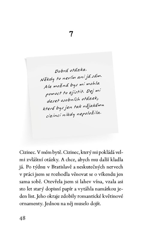 Poznávají se prostřednictvím vzkazů, které postupně přerůstají v emotivní dopisy odhalující jejich minulost a nevyřčená tajemství. Nakonec se přes popsané řádky sblíží více, než by Lianě vyhovovalo. Když ovšem „cizinec“ poruší dohodnuté pravidlo, jejich komunikaci to naruší. Je potřeba skoncovat s iluzemi. Anebo se konečně podívat jeden druhému do tváře. Dá se vůbec zamilovat do pouhé představy? Možná mnohem snadněji než do skutečného člověka.