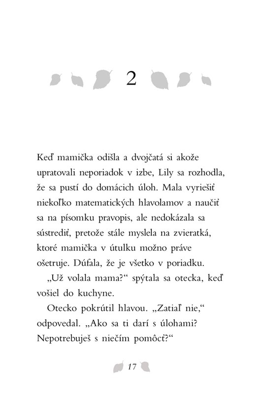 Mamička malej Lily prinesie domov tri maličké zoslabnuté mačiatka, ktoré niekto našiel opustené v daždi pod kríkom. Mačacie mláďatká potrebujú opateru a pravidelne kŕmenie. Celá rodina vrátane sučky Meg si malých chlpáčikov okamžite zamiluje. Najmä Lily sa snaží s mačiatkami čo najviac pomáhať. Podarí sa ich zachrániť? A aký osud na ne čaká?