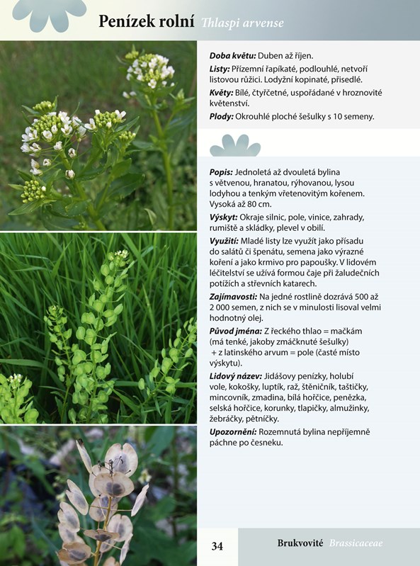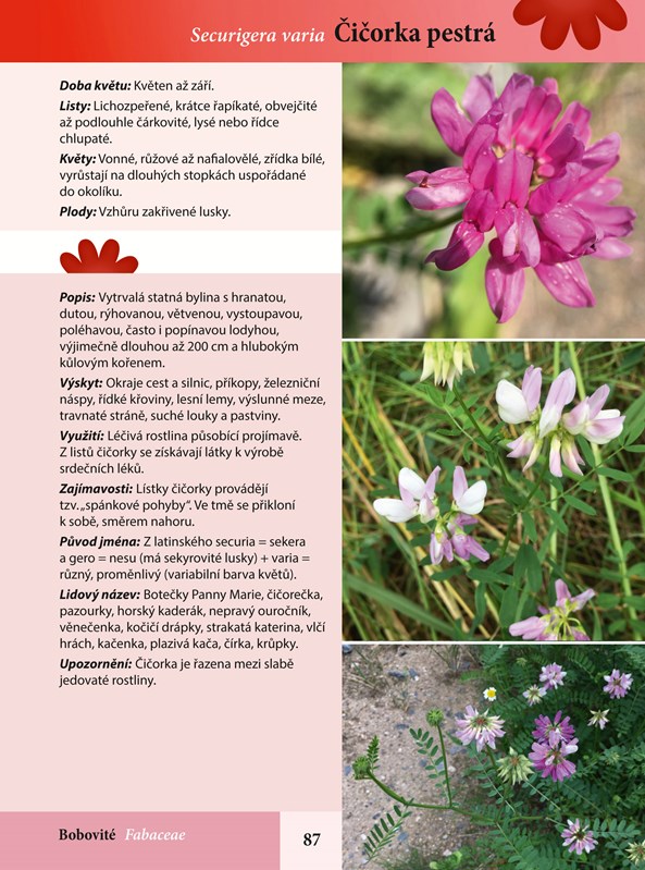 Rostliny jsou v knize řazeny abecedně, vždy podle barvy květů. Jednoduché určující znaky a fotografie pořízené v přirozeném prostředí pomohou k jejich snadnému určení všem, kdo se zajímají o přírodu a chtějí se dozvědět více o konkrétním druhu. Kniha dále uvádí botanické zařazení rostlin, lidové názvy, původy jmen, zajímavosti i využití rostlin jako léčivých bylinek či zdravých potravin.