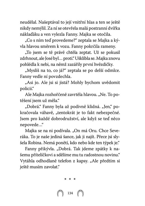 Do Kaltenbachu přichází jaro a Severákovo hříbě si rychle získává srdce všech v hřebčíně. Z Majky a Ory se dávno stala nerozlučná dvojka. Ovšem v Marii Kaltenbachové, která se v terapeutickém centru hřebčína cítí nepotřebná, klíčí stará ctižádost. V mladé klisničce vidí velký potenciál a jede ji představit na výstavu. Tam se však přihodí něco strašného: Ora beze stopy zmizí! Majka s přáteli se na vlastní pěst pouští do pátrací akce, ale zprvu netuší, jakému nebezpečí se vystaví.