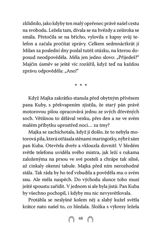 Majka se moc těší na cestu za Milanem do Ameriky. Pár dní před odjezdem však na Severákově pastvině vypukne požár! Černý kůň sice dokáže na poslední chvíli uniknout smrti v plamenech, ale od té události je jako vyměněný. Z jindy sebevědomého hřebce je klubko nervů, dokonce odmítá i žrát. Ačkoli Majka dělá všechno možné, aby hřebci pomohla, zdá se, že přehnanou starostlivostí jeho stav jen zhoršuje. Pan Kuba pak Majce vypráví starou legendu: Vedle spáče znají Mongolové ještě jednu bytost – bojovníka. Ten dodává koním odvahu a sílu…