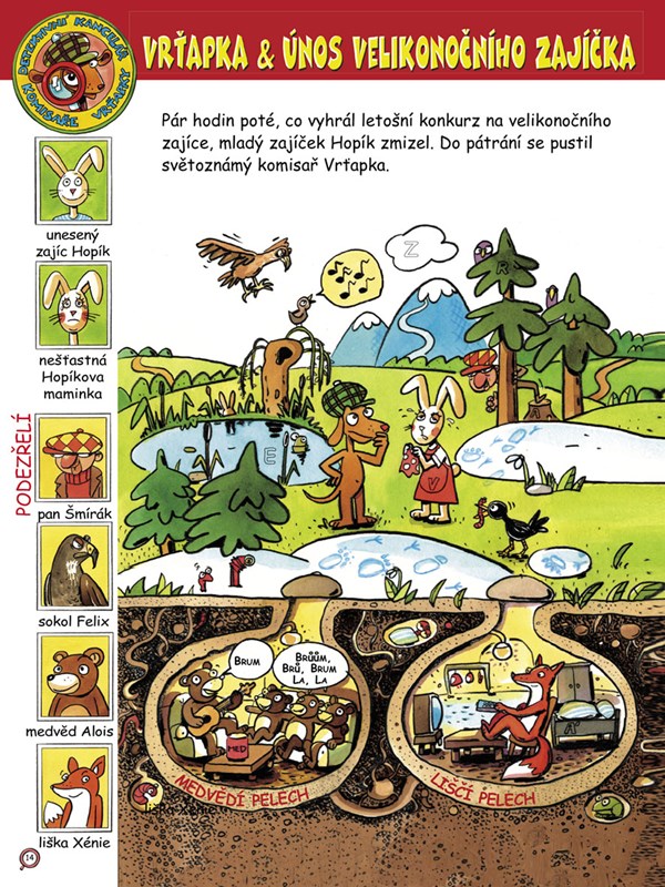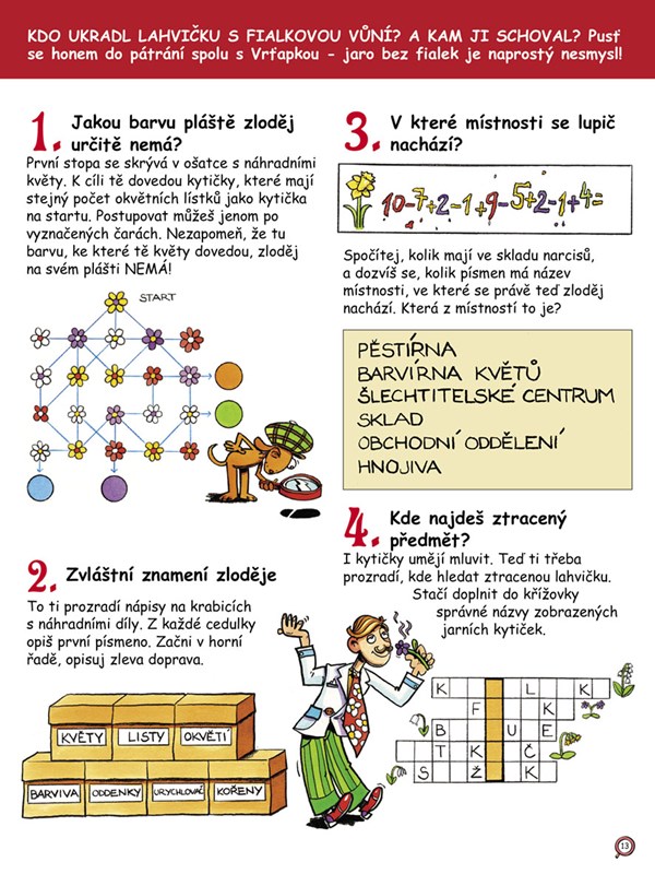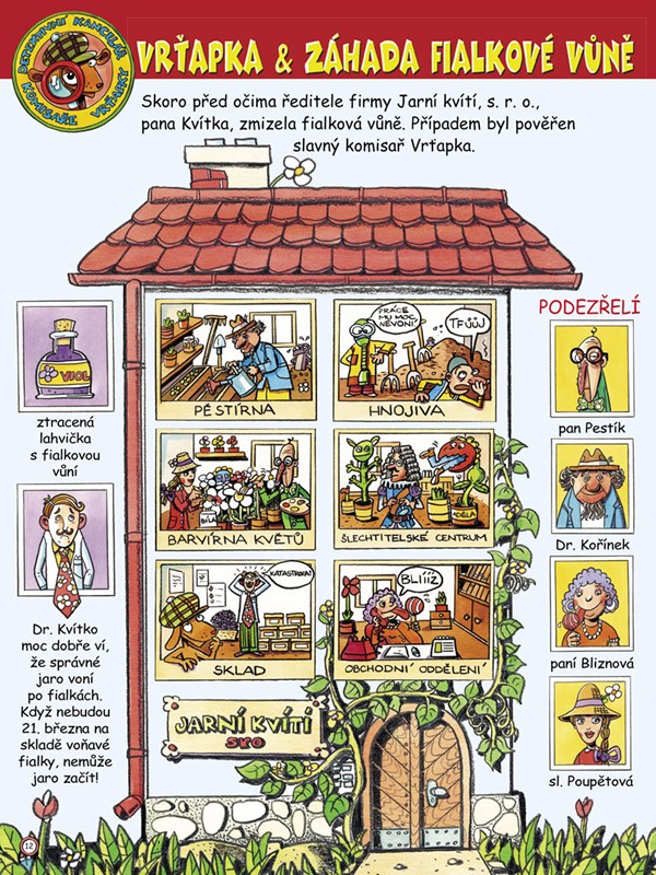 Jednička mezi detektivy, psí komisař Vrťapka, je postrachem všech padouchů a lapků. Vyřešil řadu těch nejzapeklitějších detektivních případů a jeho sláva ho přivedla až na stránky Mateřídoušky!! V knize čtenáři najdou přes třicet jeho případů, ale odhalit pachatele musejí sami na základě daných indicií. Navíc se mohou pocvičovat v úsudku a kombinačních dovednostech ve Vrťapkově detektivní škole, řešit řadu nových úkolů, rébusů a hádanek. Jen tak z nich budou machři mezi detektivy