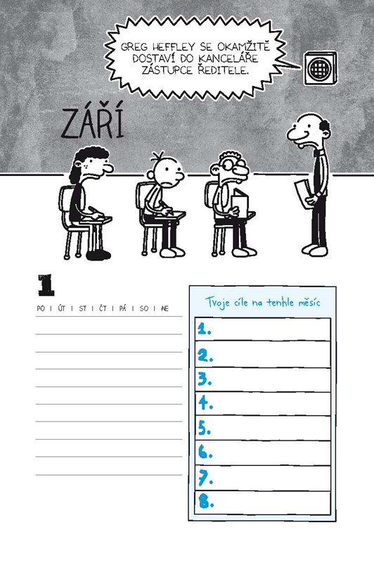 Konečně budete moci s Gregem Heffleym strávit 365 dní v roce a pořád dokola! Tenhle školní deník je naprosto výjimečný, protože je věčný, a s ním už na nic nezapomenete. Naplánuje vám víkendy i všechny prázdniny. Na každé stránce najdete obrázky oblíbených postaviček a spoustu dalších informací speciálně vybraných a uspořádaných tak, jak jen to budete potřebovat, abyste přežili školní rok.