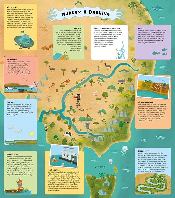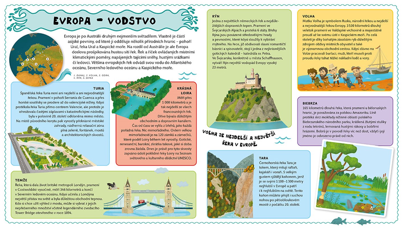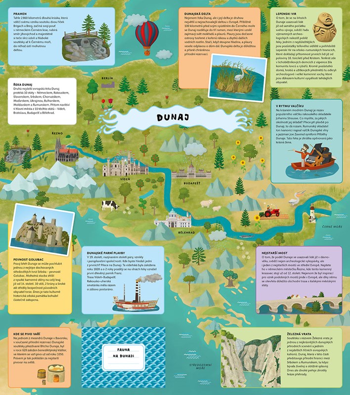 Otevřete knihu tvořenou šesti rozkládacími mapami, nasedněte do kajaku, loďky nebo do člunu a vydejte se na velkou výpravu po zajímavých řekách světa.