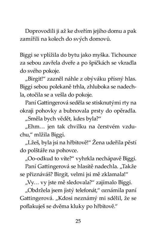 Tajný vzkaz vyláká kamarády z Klubů Tygrů v noci na hřbitov. Když se mezi náhrobky zjeví postava upíra, pořádně je to vyděsí. Tygři se stáhnou do bezpečí, ale příhoda jim nedá spát. Vrátí se na hřbitov ještě jednou, ale tentokrát se jim do cesty připletou další záhadné postavy celé v černém a začnou je pronásledovat a ohrožovat. Přijdou Biggi, Luk a Patrik celé věci na kloub, nebo na hřbitově opravdu straší?