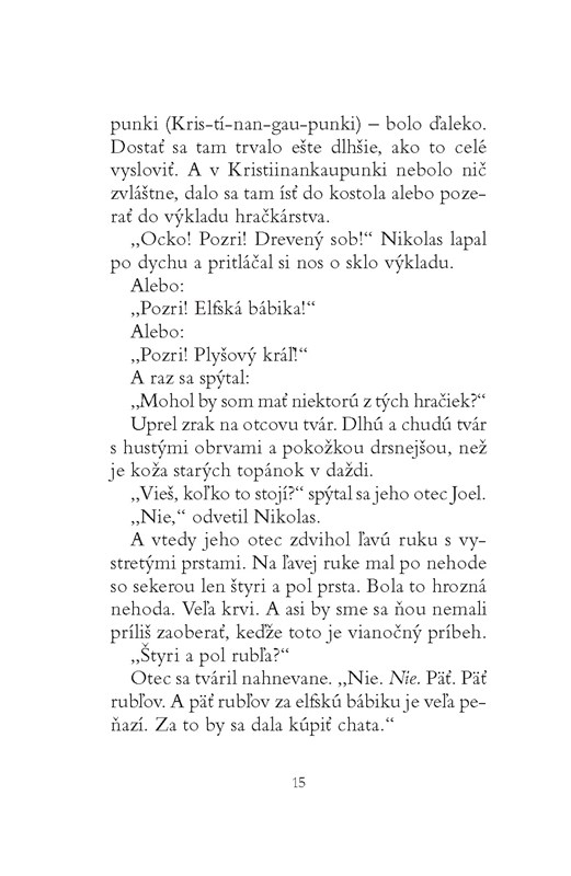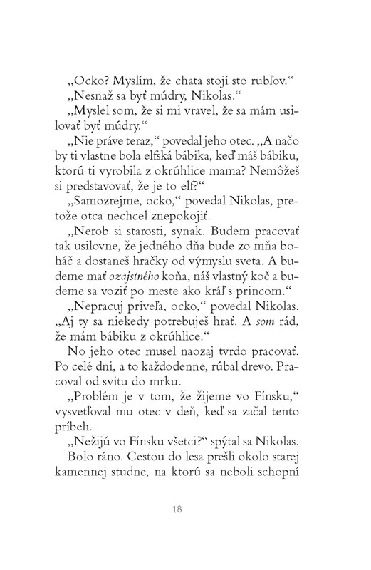 Viete si však predstaviť, že kedysi ho nikto nepoznal? Bol obyčajným chlapcom, ktorý dostal meno Nikolas a žil uprostred ničoho, presnejšie uprostred Fínska. Veľa toho o svete nevedel, poznal však chuť hubovej polievky, chlad severského vetra a príbehy, ktoré mu rozprávali rodičia. A na hranie mal iba jedinú bábiku. S mágiou ho spájalo len to, že v ňu veril.