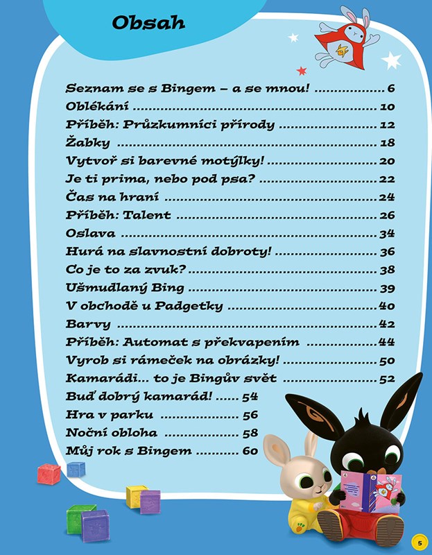 Tato knížka je dokonalým dárkem pro všechny Bingovy příznivce. Překypuje zábavným čtením, novými příběhy, návody na kutění nebo vaření, omalovánkami a dalšími aktivitami. U této knížky se nebude nikdo nudit.