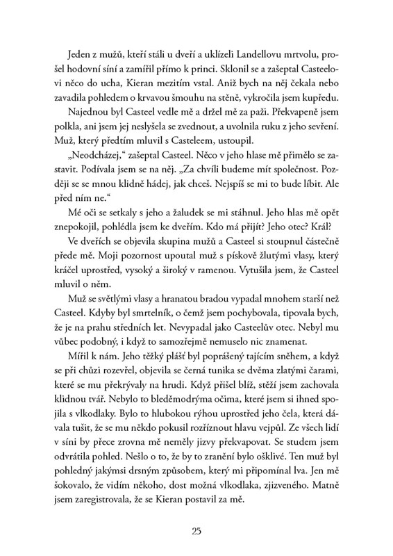 Všechno, v co Poppy věřila, je lež – oklamal ji i muž, do kterého se zamilovala. Teď sama netuší, kým bez závoje Panny vlastně je. Ví ale, že pro ni neexistuje větší hrozba než Princ Atlantie. Chce, aby proti němu bojovala, a ona jeho rozkaz ráda uposlechne. Aby našla svého bratra, musí se spojit s nebezpečně svůdným Casteelem Da’Neerem. Je jen otázkou času, než tajemství dvou království vyjdou na světlo. Ale až nebesa začnou krvácet, mohlo by být pozdě.