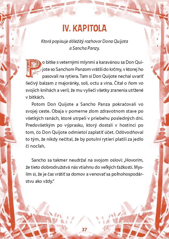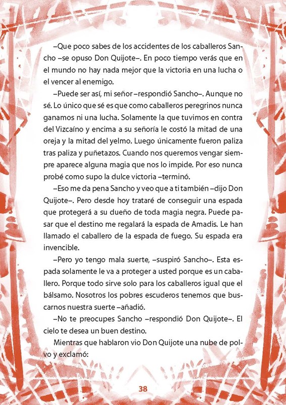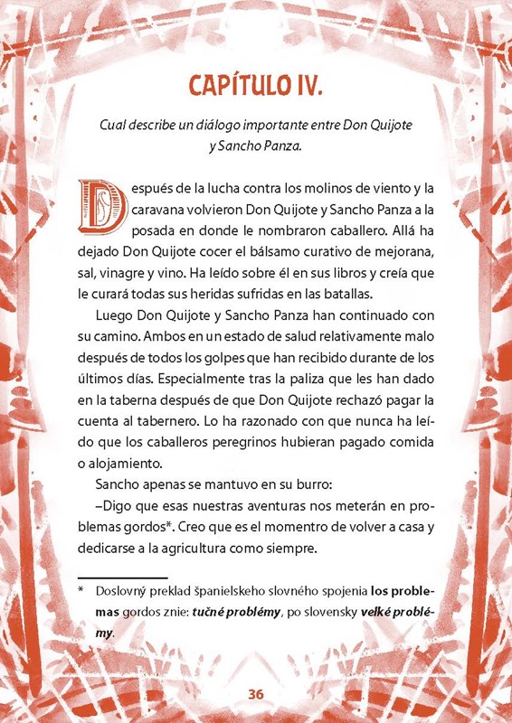 V knihe nájdete sedem hlavných kapitol, rozprávajúcich o putovaní známeho rytiera. Sú spracované pre začínajúcich čitateľov, ktorí si chcú vyskúšať, ako si poradia so súvislým textom v španielčine. Úroveň jazyka v publikácii je vhodná pre začiatočníkov a mierne pokročilých študentov. Slovenský zrkadlový preklad umožní čitateľovi obratom skontrolovať, či cudzojazyčnému textu správne porozumel. Cvičenia na konci knihy pomôžu overiť získané znalosti.