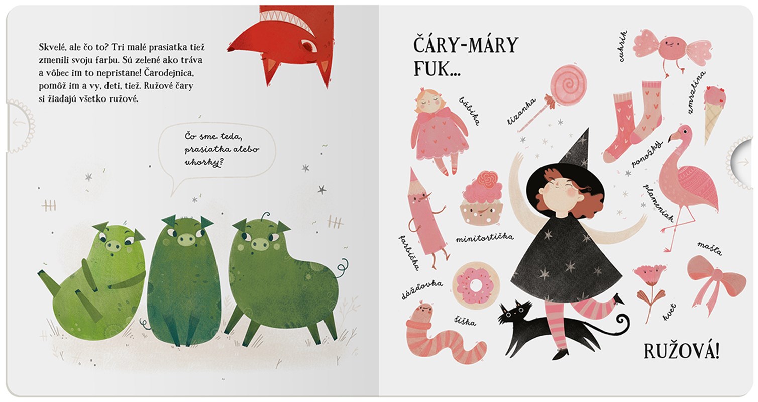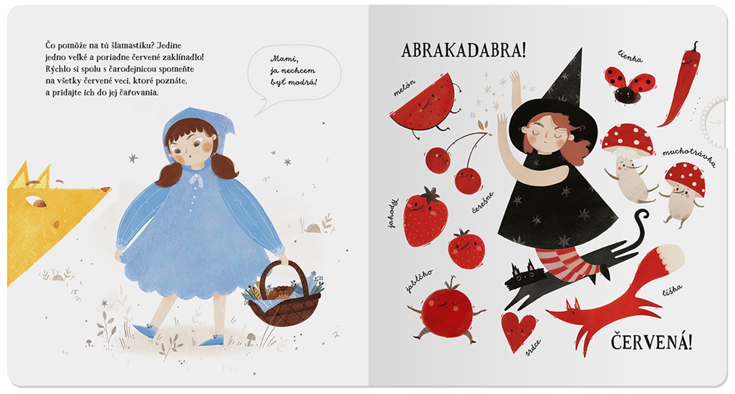 Každá začínajúca čarodejnica občas nejaké tie čary popletie. Uznajte samy, deti, už ste niekedy videli modrú Čiapočku, zelené prasiatka alebo šedivú Zlatovlásku? Čarujte spoločne s malou čarodejnicou a vráťte rozprávkovým bytostiam ich správne farby.