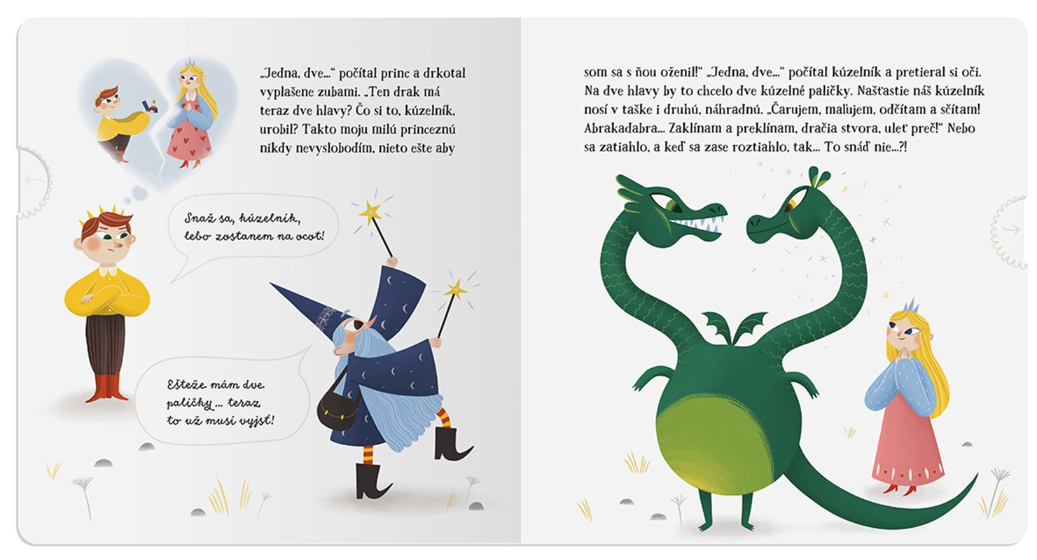 Bez zručnosti počítať sa nezaobíde ani rozprávkový princ. Nuž, tomu, kto nemá všetkých päť pohromade, nepomôžu ani kúzla popleteného kúzelníka. A že to ten čarodejník pekne zamotal! Z jednej dračej hlavy ich vyrobil hneď šesť. Vyskúšajte, či ich dokážete všetky spočítať...