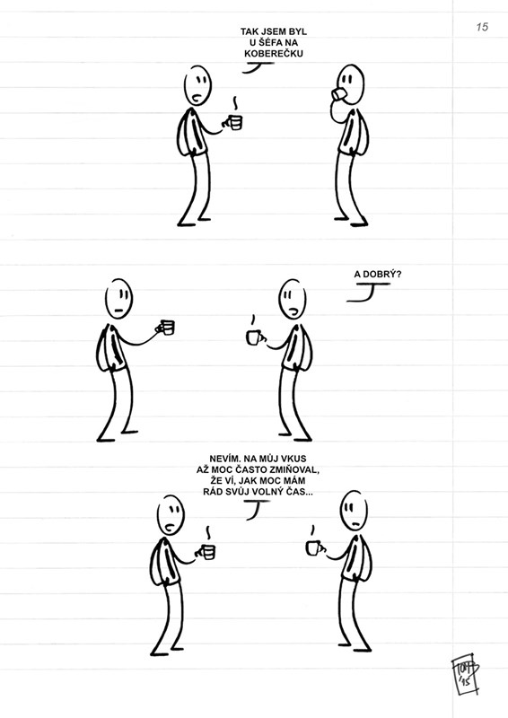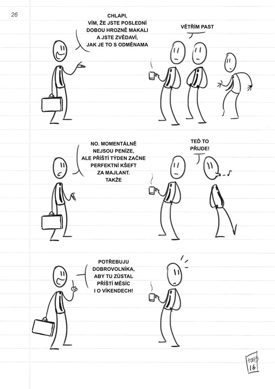 První tištěné vydání satirického web komiksu, který si utahuje z občas absurdního života v kancelářích a jazyka jejich „obyvatel“. VAROVÁNÍ: Možná se v něm najdete!