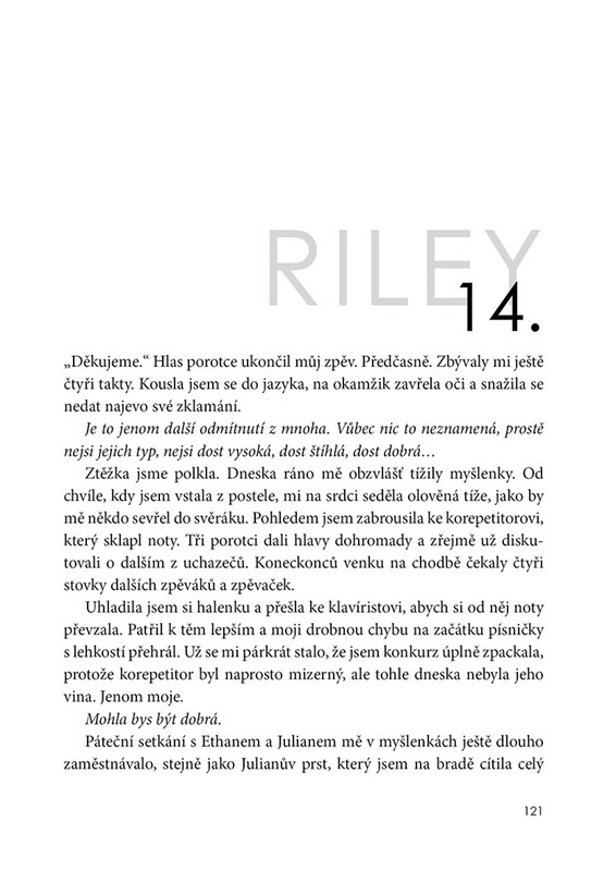 Riley má jen jeden sen – stát na prknech slavné Broadwaye. Navzdory usilovné práci a obcházení konkurzů ale zatím dosáhla jen toho, že pracuje jako servírka v bistru prestižní hudební školy. Tam se seznámí s Julianem, známou rockovou hvězdou. A přestože se chce soustředit na svou kariéru, najednou se její dosavadní svět obrátí vzhůru nohama. Také Julian je pevně rozhodnutý držet si Riley od těla. Zapřisáhl se, že si nikdy znovu nezačne s holkou, která sama touží po tom stát na jevišti. Společná láska k muzice je přesto svede dohromady. Jakmile se však jejich vztah dostane na veřejnost, začne mít trhliny a Riley pochopí, že život v záři reflektorů má i své stinné stránky...