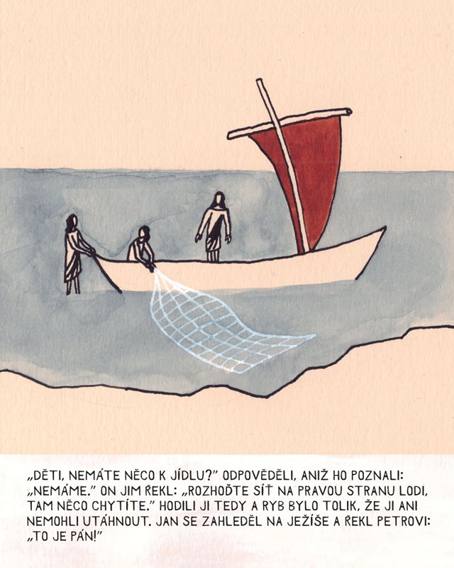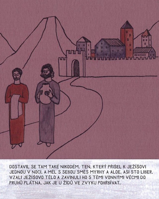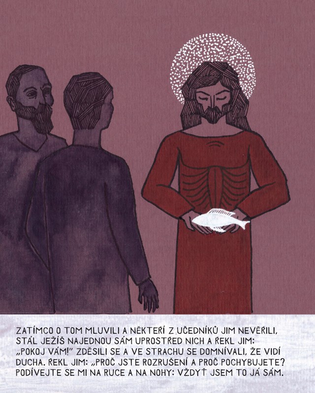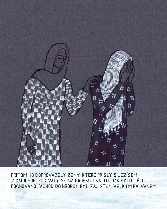Radostný velikonoční příběh vzkříšení Ježíše a následného setkávání se s ženami a učedníky ilustrovala Alice Brotánková.