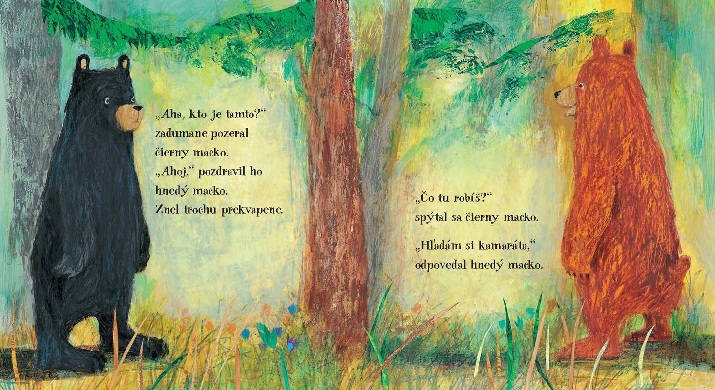 Našťastie stretne hnedého macka. Aj on chce mať kamaráta. A tak hľadajú spolu.