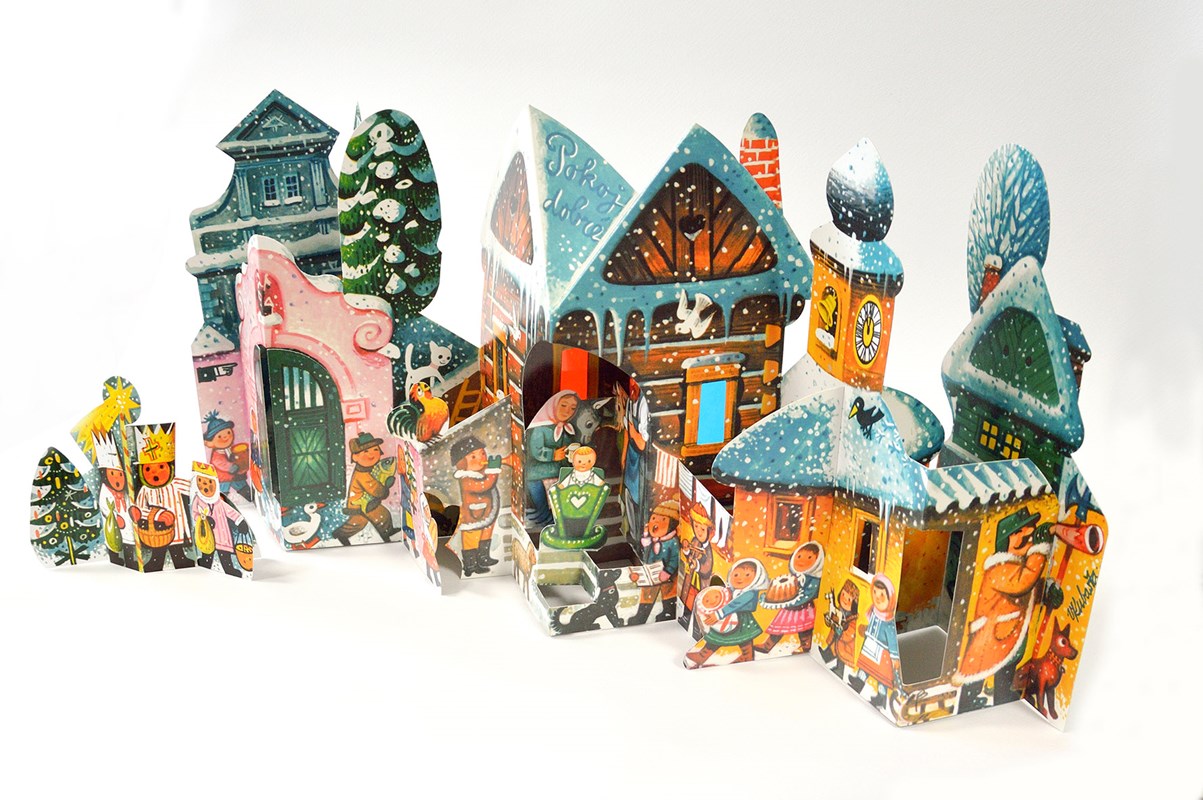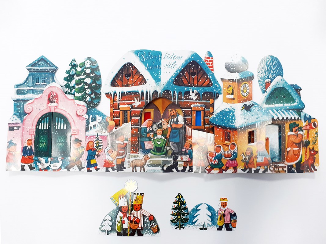 Vánoční prostorové betlémy geniálního ilustrátora a tvůrce knih pro děti Vojtěcha Kubašty.