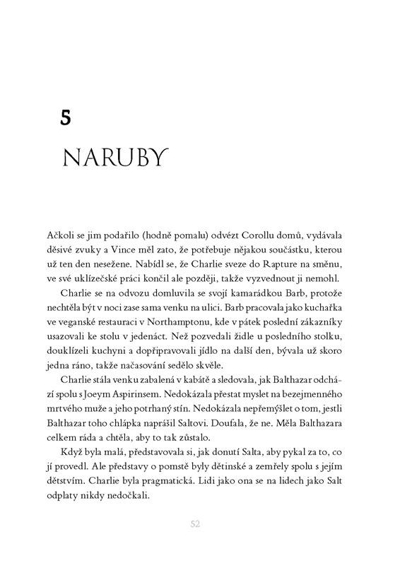 Charlie je podfukářka a zlodějka, pracuje taky jako barmanka a snaží se vyhýbat nebezpečnému prostředí ilegálního kupčení se stíny. Ale když se jí do života vrátí děsivá postava z minulosti, Charliina přítomnost se promění v chaos a její budoucnost je přinejlepším nejistá. Přinejhorším právě přestala existovat...