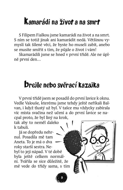 Michal Souček a Filip Fialka jsou kamarádi na život a na smrt. Mají dobré srdce, a tak když mají pocit, že někdo v jejich okolí potřebuje pomoc, vrhají se do toho po hlavě. Bohužel, každá jejich snaha se vždycky nějak zvrtne, a proto místo pochval sbírají Michal s Fildou spíše černé puntíky. První díl úspěšné série Miloše Kratochvíla Pachatelé dobrých skutků.